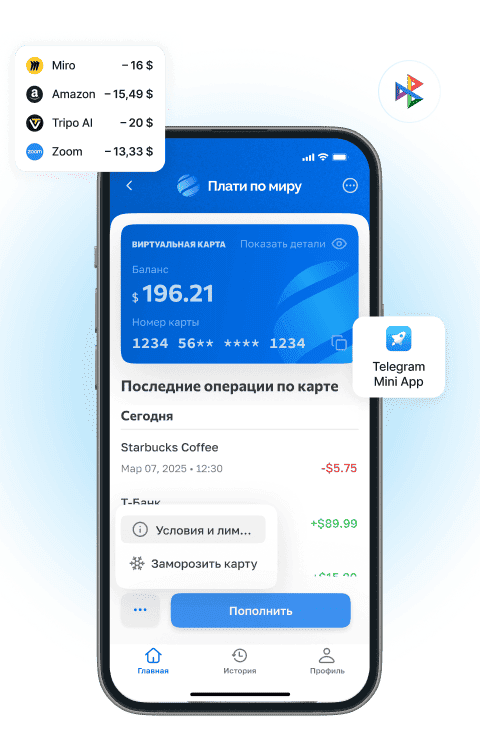 Виртуальная карта — это цифровой аналог обычной банковской карты, который не имеет физического носителя. Она привязывается к вашему счёту и позволяет совершать платежи в интернете, оплачивать подписки, покупки в зарубежных магазинах и даже выводить деньги на другие банковские счета.