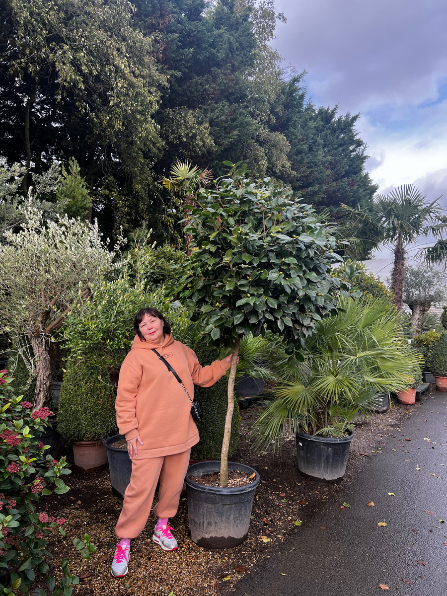 В садовом центре много крупномеров в огромных кадках.