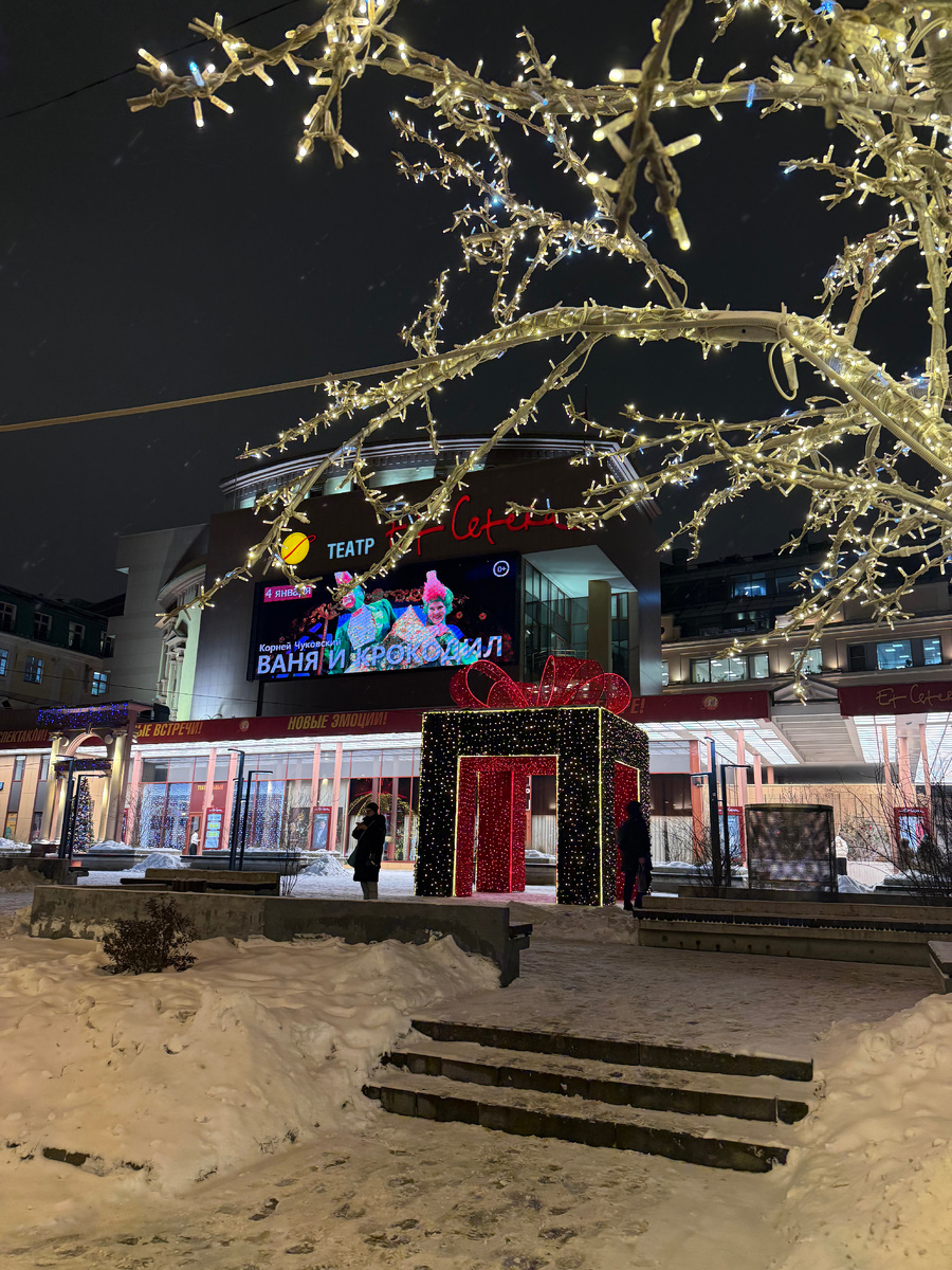 Вышла я у офисного здания Лукойл. Здесь всё тоже красиво оформлено и украшено.