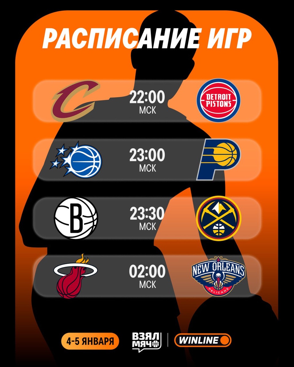 ! Мы стартуем с горячего раннего матча двух топов Востока, а заканчиваем всегда жарким противостоянием «Мемфиса» и «Лейкерс». Что будете смотреть? 22:00 | Кливленд — Детройт 🎙 Степан Будяков 23:00 | Орландо — Индиана 🎙 Матвей Юдкин 23:30 | Бруклин — Денвер 🎙 Александр Зотеев 02:00 | Майами — Новый Орлеан 🎙 Виталий Чубаев 02:00 | Вашингтон — Миннесота 🎙 Андрей Каспарян 04:00 | Финикс — Оклахома 🎙 Иван Латышев 05:00 | Сакраменто — Милуоки 🎙 Андрей Протасов 05:30 | Лейкерс — Мемфис 🎙 Дмитрий Сидоренко Прямые трансляции всех матчей смотрите в нашей группе ВК! 🏀 ПОДПИШИСЬ — ЗДЕСЬ ЖИВЁТ БАСКЕТБОЛ!