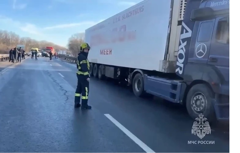 - В 8:06 на 1042-м километре автодороги М-4 «Дон» в южном направлении 37-летний шофер за рулем грузовика «Мерседес Бенц» в составе автопоезда «Лаг», по предварительным данным, двигаясь по левой полосе, не выбрал безопасную дистанцию и столкнулся с движущимся впереди в попутном направлении легковым автомобилем «Ауди» под управлением 47-летнего водителя. От столкновения «Ауди» продолжила движение и врезалась в остановившиеся ранее в результате другого ДТП легковушки. Это «Рено Логан», за рулем которого был 65-летний водитель и «Лада Веста», ей управлял 53-летний шофер, - прокомментировали в донском главке.В результате ДТП погибли четыре человека, еще четверо пострадали.Видео с места массовой аварии с четырьмя погибшими на трассе М-4 «Дон» показали экстренные службы. Ролик опубликовали в Главном управлении МЧС по Ростовской области.- На кадрах видно, как посреди трассы стоит фура, на которой при первом приближении не наблюдается значимых повреждений. Перед ней – груда металла, которая был