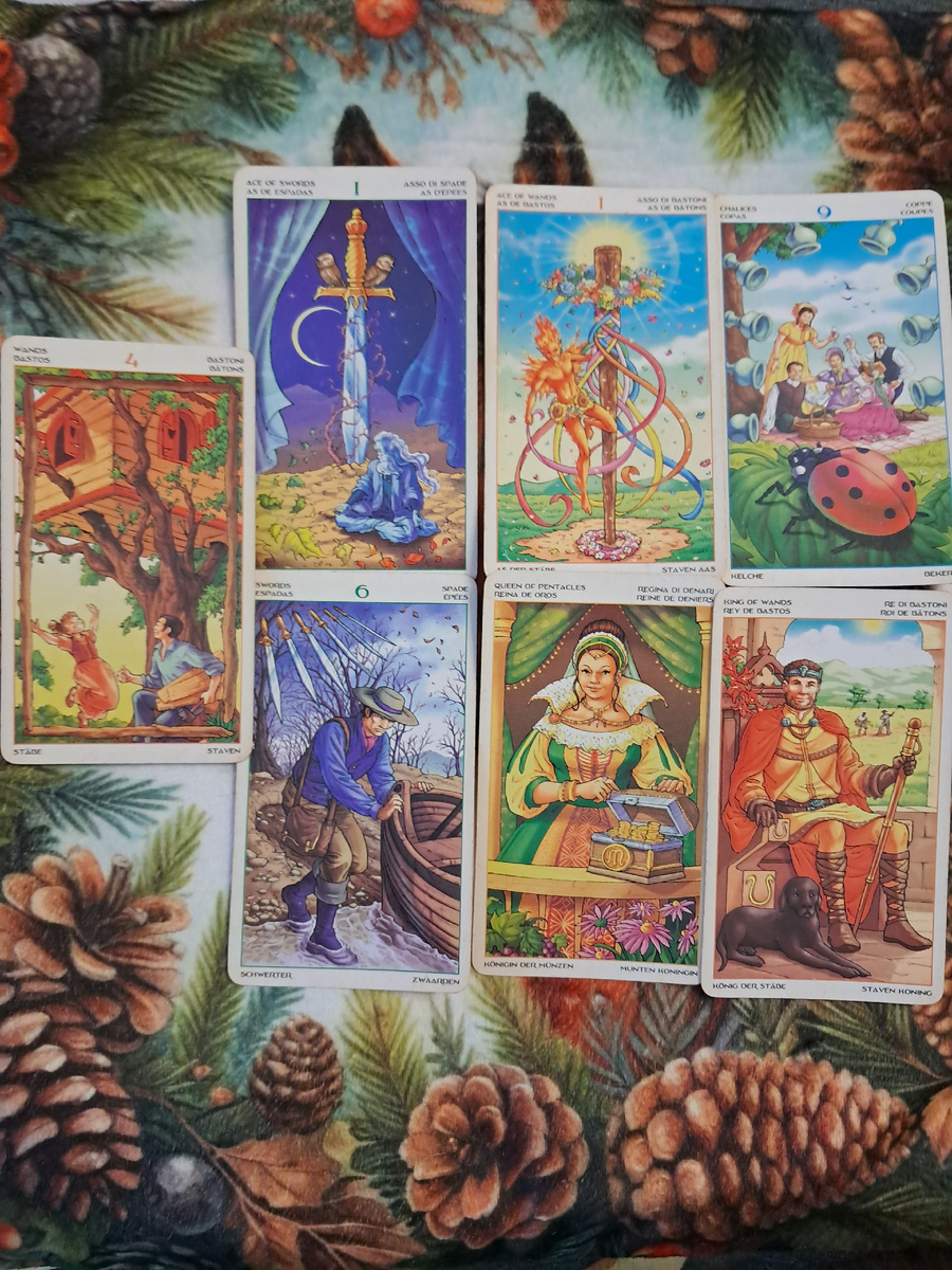 · 6 Мечей: Карта перехода, спокойного движения от трудностей к более спокойным водам. Это может означать плавное изменение ситуации на работе (перевод в другой отдел, смена проекта, постепенное завершение старой и начало новой главы) или разумное, обдуманное управление финансами, которое выведет вас на новый уровень спокойствия.🧘