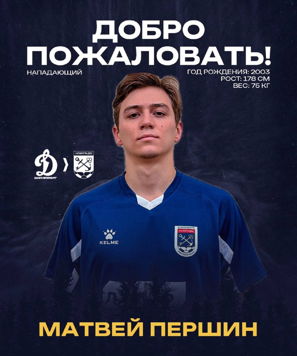 🚨 Нападающий Матвей Першин подписал контракт до конца сезона 2025/26 с футбольным клубом «Ленинградец».