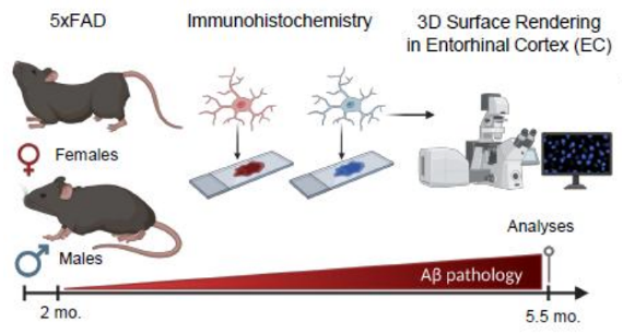 У женщин болезнь Альцгеймера наблюдается намного чаще и протекает гораздо быстрее, однако причины этого до конца не известны. В новом исследовании, опубликованном в Journal of Neuroinflammation, на примере самок мышей исследователи продемонстрировали, что микроглия у женщин гораздо сильнее реагирует на интерферон, что и вызывает отличие в прогрессировании заболевания. Схема эксперимента. Credit: Calcines-Rodríguez et al, Journal of Neuroinflammation / 2025 Две трети пациентов с болезнью Альцгеймера – женщины, причем болезнь у них развивается гораздо быстрее, чем у мужчин: быстрее теряются когнитивные функции и атрофируются ткани головного мозга. Причины такого перекоса ясны далеко не полностью и требуют тщательного изучения. Важную роль в прогрессировании болезни Альцгеймера играет микроглия: часть клеток микроглии способна к фагоцитозу амилоидных бляшек. В новом исследовании ученые из США продемонстрировали отличия в строении амилоидных бляшек у мужчин и женщин и показали, что есть п