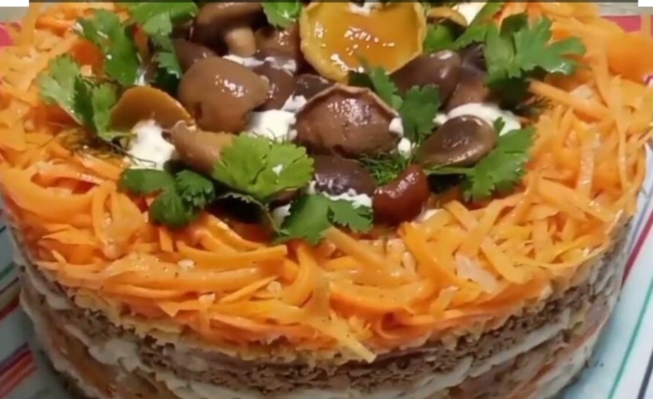 · 4-й слой: Обжаренные шампиньоны.