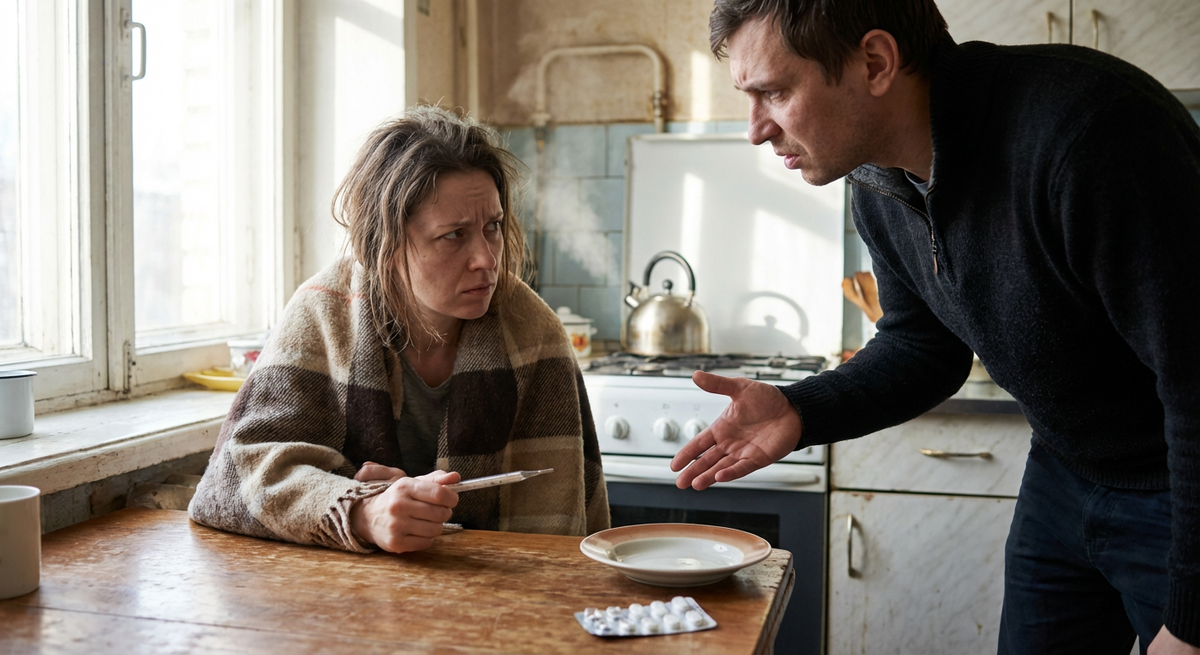 Муж подошел ближе, но не для того, чтобы потрогать лоб или поправить одеяло. Он с подозрением посмотрел на градусник, лежащий на прикроватной тумбочке.