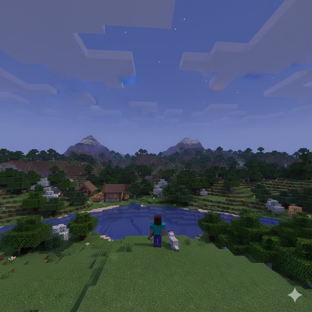 Слишком тихим. Стив больше не считал дни. Он строил — не из страха, а из надежды. Его дом вырос: каменные стены, стеклянные окна, крыша из тёмного дерева. Рядом раскинулась ферма, колосья пшеницы покачивались на ветру, а у порога неизменно дремал Снежок. Иногда Стив ловил себя на мысли, что ему не хватает опасности. Но стоило солнцу скрыться за холмами, как он вспоминал: тишина бывает страшнее рёва монстров. В одну из таких ночей факелы во дворе погасли разом. — Странно… — пробормотал Стив, выходя наружу. Луна светила ярко, но тени под деревьями были слишком густыми. И тогда он увидел их — следы. Ровные, аккуратные, человеческие. Они вели от реки к старой шахте. — Я закрыл её… — прошептал он. Снежок зарычал, шерсть на загривке встала дыбом. Стив взял алмазный меч, запасся факелами и спустился вниз. Шахта встретила его холодом. Камень под ногами был покрыт тонким слоем фиолетовой пыли, будто сюда просочилась сама энергия Эн