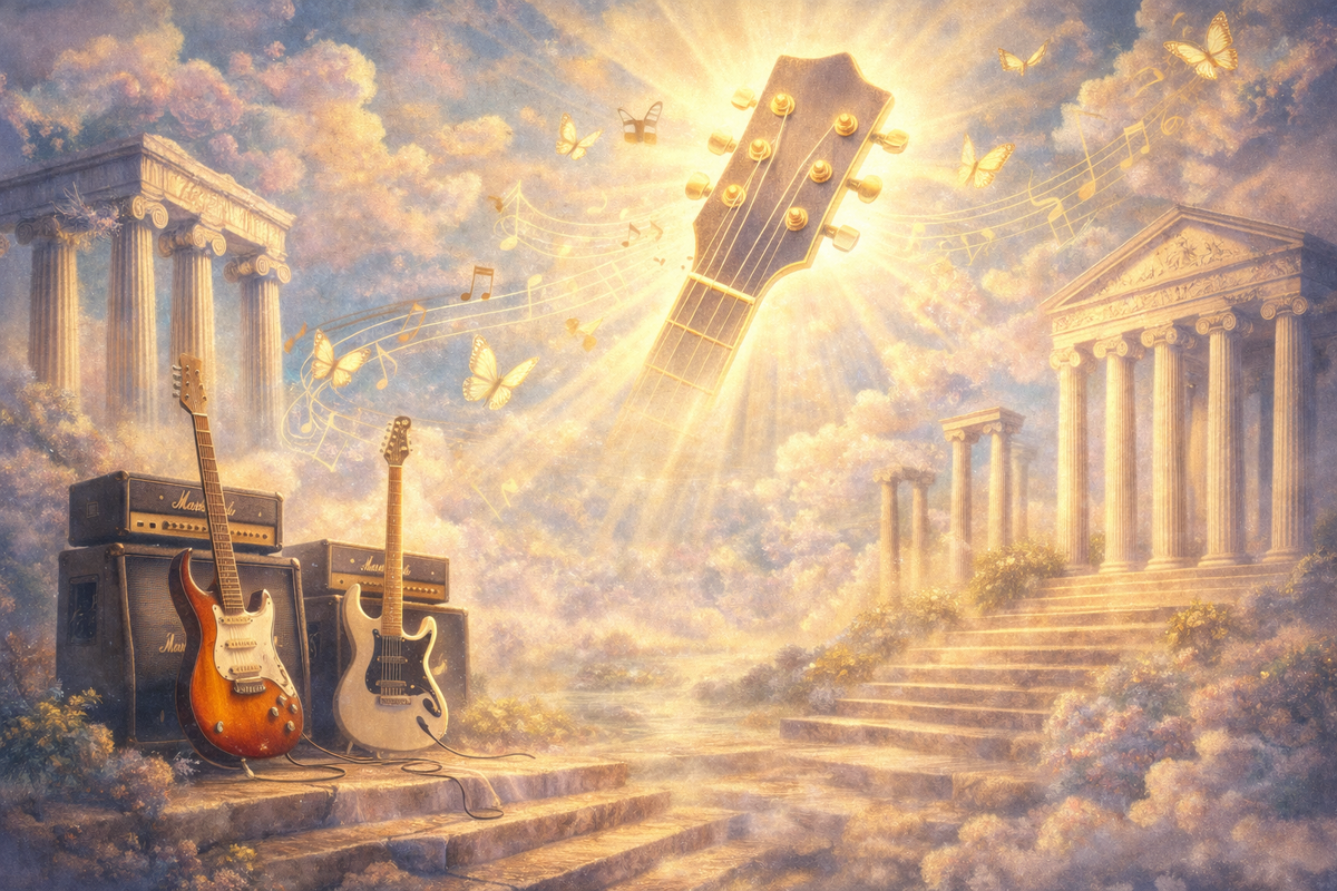 Заголовок моей очередной рок-философской статьи звучит как название диссертации. Я писала только магистерскую диссертацию, тема которой была далека и от рока, и от философии. Тем не менее, философию я изучала и в юридическом университете, и в музыкально-педагогическом. Но справедливости ради стоит отметить, что самые прочные и интересные базовые знания по философии я получила ещё в техникуме, на юридическом факультете, благодаря замечательному преподавателю. Но вернёмся к платонизму, который является отправной точкой наших рок-размышлений. Платон утверждал, что существует мир идей, эйдосов — совершенных форм всего сущего. Представьте себе идеальный стул, идеальную кошку, идеальную пиццу… Согласно Платону, всё, что мы видим вокруг — лишь несовершенные отражения, бледные тени тех самых идеальных форм, обитающих в горнем мире идей. А что, если перенести эту теорию в контекст рок-музыки? Что, если где-то там, в метафизическом пространстве платонических риффов, существует идеальный рифф — с