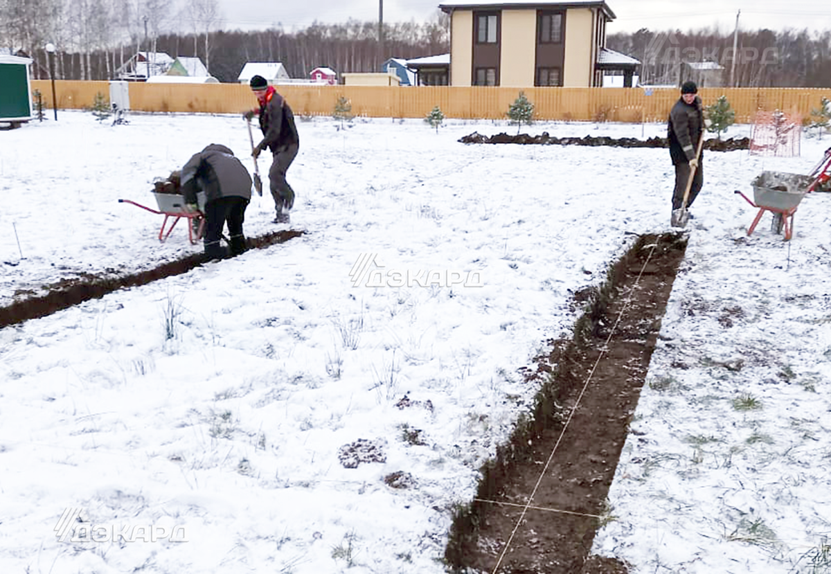 Надежность загородного дома зависит не только от устройства стен, но прежде всего от вида его фундамента. Бесспорно, никакие облегченные опоры не сравнятся с капитальным бетонным основанием. Именно таким основаниям является монолитный ж/б ростверк по буронабивным сваям. Монолитный ростверк по буронабивным сваям представляет собой конструкцию из опорных ж/б свай, заглубленных ниже глубины промерзания, соединенных между собой на уровне грунта бетонной ж/б лентой (ростверком). Монтаж буронабивных свай производится так: на нужную глубину в почве бурится скважина, куда помещается опалубка в виде обсадной асбестоцементной трубы. В опалубку вставляется армокаркас из арматуры Ø12 мм. Армокаркас опорных свай завязывается с арматурой ростверка и все это заливается бетонной смесью М-300 (Б 22,5). Получается единая бесшовная ж/б конструкция из ленты и свай. Железобетонное основание из ленты равномерно распределяет вес дома и надежно защищает строение от деформации, а ж/б сваи отвечают за передачу