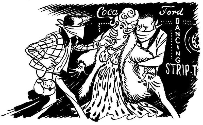 Продолжаем обзор произведений датского художника-коммуниста Херлуфа Бидструпа (1912—1988). На этот раз тема — главная страна капитализма, США. Конечно, могут сказать, что с 1960-х годов расизм в США видоизменился. Да, изменился... но не исчез. Это карикатуры на президента США Гарри Трумэна: Трумэн уходит, его место занимает Дуайт Эйзенхауэр: Президент США Линдон Джонсон пытается расколоть пасхальное яйцо, на котором написано «Вьетнам», но получает мощную ответку: ПРИМИТЕ ДЕЯТЕЛЬНОЕ УЧАСТИЕ В РАБОТЕ БЛОГА