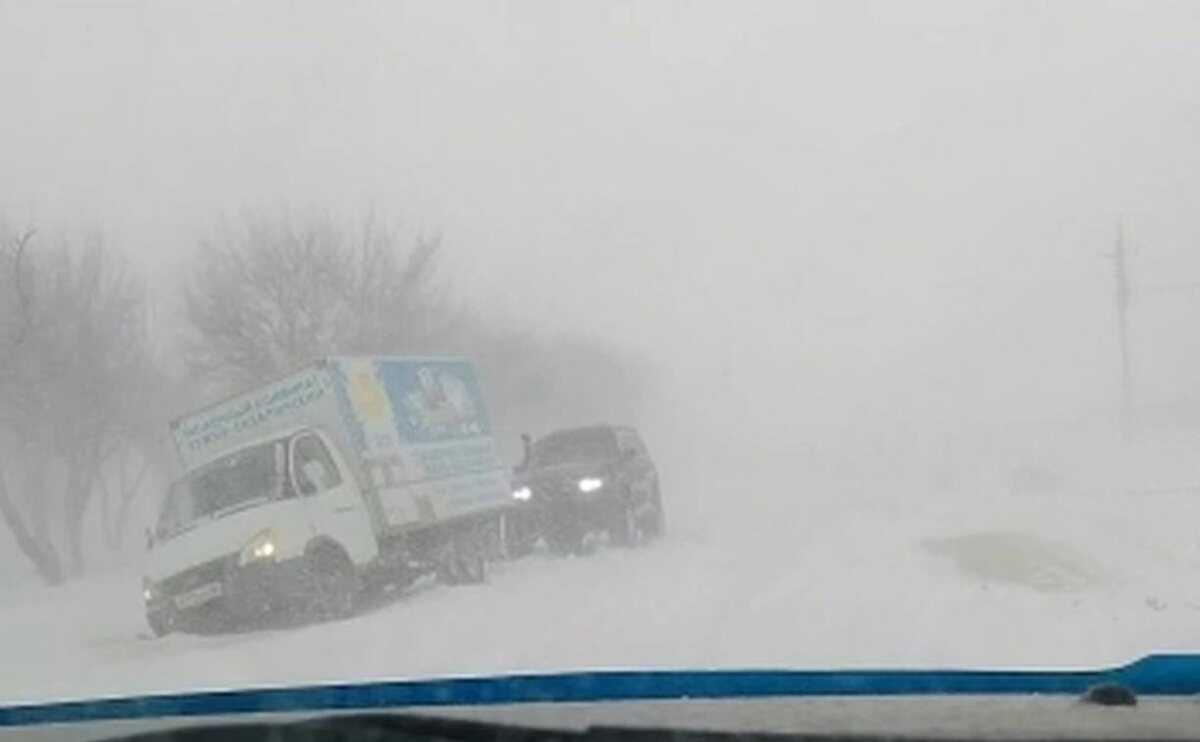 ⛔️⛔️⛔️Дорогу в Чишминском районе перекрыли для грузовиков и пассажирского транспорта из-за метели