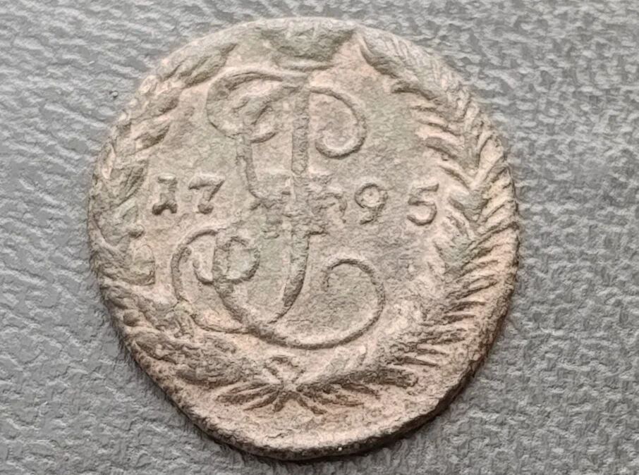 Вот такая деньга времен Екатерины II лежит в баночке и молчит: Очень заметно, что она имеет неплохой вид. Все элементы оформления хорошо сохранились, а сама монета покрыта "зеленой патиной". Но при этом на поверхности монеты имеется вполне обычная грязь в виде серости. Наименование монеты - денга 1795 года ЕМ. Это сочетание букв и цифр уже как бы говорит, что монетка довольно распространенная, так как тираж был относительно большим. Но не оставлять же её в таком виде. Чистить её не надо, её нужно просто немного помыть. Поместил монетку в мыльный раствор и оставил её там на пару суток. Затем при помощи обычной зубной щетки удалил всю ненужную грязь. Получилось вот так: Вся темно-зеленая патина сохранилась. Сама по себе монета стала темнее (но на цветопередачу также повлиял фон и освещение). В любом случае, больше ничего с этой монетой делать не нужно. Если делать правильно, то теперь бы не мешало чем-то закрепить патину (напишите в комментариях, чем вы закрепляете патину). - И ско