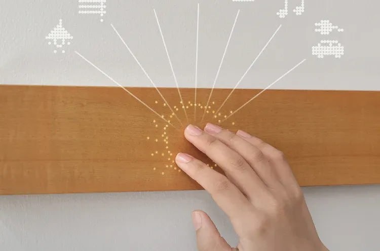представляет собой буквально кусок дерева на стене. Гаджет впервые показали на выставке CES еще в 2019 году, и с тех пор он регулярно появлялся на различных мероприятиях с обещанием скорого релиза. В этом году обещание наконец сдержали, правда, ограниченным тиражом и с ценником в $999 (сейчас по акции за $799). Mui Board — это антипод умных дисплеев Amazon Echo Show или Google Nest Hub. Контроллер на базе одноплатного компьютера Raspberry Pi с поддержкой протокола Matter в неактивном состоянии выглядит как обычная деревянная планка. Но стоит прикоснуться к его сенсорной поверхности, как на ней появляются светящиеся точечные иконки для управления освещением, музыкой, таймерами и другими функциями. Устройство выпускается в двух вариантах — из светлого клена и темной вишни. Название Mui отсылает к японскому понятию гармонии с природой, а сам гаджет сертифицирован Институтом спокойных технологий — организацией, основанной в 2019 году исследовательницей Эмбер Кейс для продвижения концепции