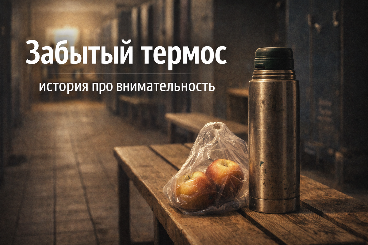 Я застегивал куртку, когда заметил на скамейке термос. Не новый, поцарапанный, с облезшей наклейкой. И рядом пакет с двумя яблоками, будто их положили "на потом" и забыли, что "потом" наступит без них.