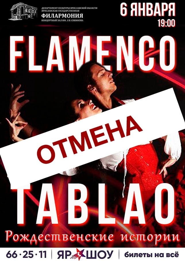 В связи с болезнью артистов, концерт "FLAMENCO TABLAO. Рождественские истории", объявленный на 6.01.2026 в 19:00, отменяется.
