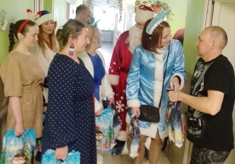 » В Богородский дом-интернат с традиционными новогодними поздравлениями приехали волонтеры добровольческой организации «Мудрые дети» и благотворительного фонда «Благо». Сначала состоялся замечательный концерт, а затем Дед Мороз и Снегурочка с новогодними подарками зашли в каждую комнату дома-интерната. «Эти новогодние встречи всегда проходят очень тепло и трогательно, жители их с нетерпением ждут. Администрация, сотрудники и жители дома-интерната искренне благодарят всех участников акции добра и милосердия за подаренный праздник!», - отмечают в интернате. Особую благодарность дом-интернат выражает координатору проекта «Мудрые дети» Вере Мотылевой и руководителю добровольческой организации «Благо» Владимиру Уткину.