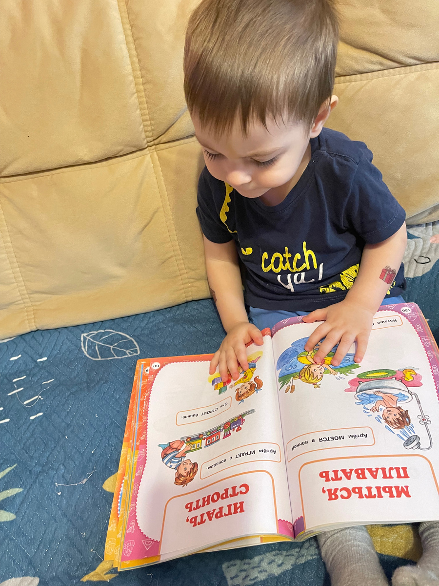 Если раньше его интерес к книгам ограничивался попытками оторвать страничку, то сейчас он сам приносит мне детские энциклопедии и просит с ним заниматься.