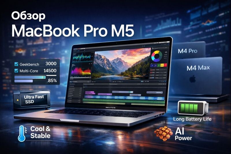 Мы разобрали MacBook Pro M5 со всех сторон: производительность, реальные задачи, нагрев, автономность, сравнение с M4 и M4 Pro.