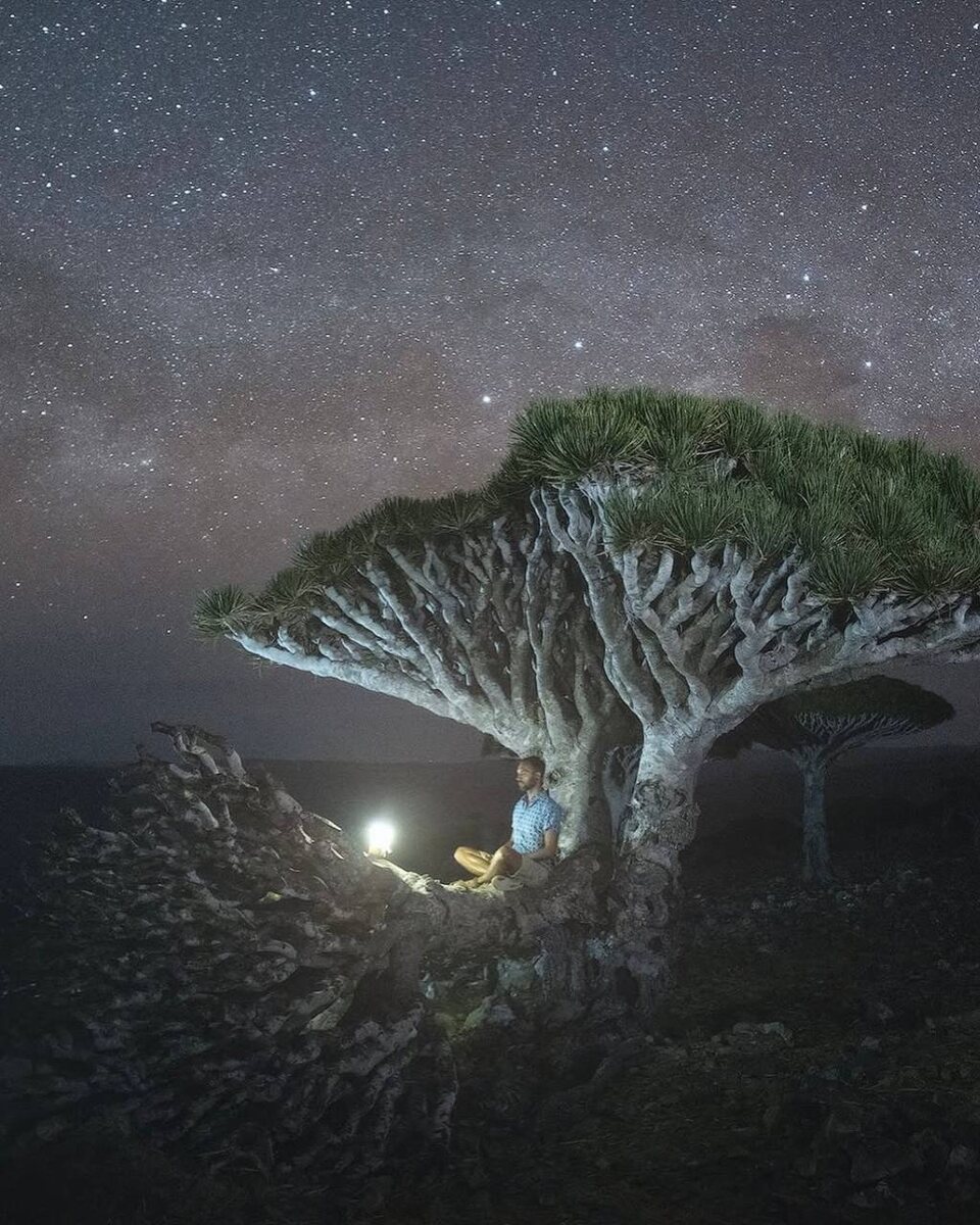 Остров Сокотра — будто забытая планета посреди океана. Здесь растут драконовы деревья: кроны-зонты, красная смола, силуэты словно из научной фантастики. Им сотни лет. Они улавливают влагу из тумана, удерживают почву, поддерживают хрупкую экосистему — и при этом выглядят как живые скульптуры. Фото: Daniel Kordan Чемоданное настроение с Сезанном