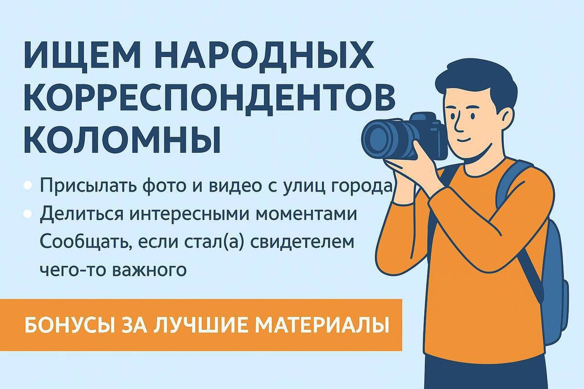 ! 📷🎥 Ты живёшь в Коломне, любишь снимать фото и видео, замечаешь интересное вокруг? Присоединяйся к нашему каналу в роли народного корреспондента от жителей! Что нужно делать: 🔹 Присылать фото и видео с улиц города — события, происшествия, атмосферные кадры 🔹 Делиться интересными моментами: концерты, забавные сцены, погода, благоустройство и т.д. 🔹 Сообщать, если стал(а) свидетелем чего-то важного 🎁 Бонусы за лучшие материалы, ваши кадры смогут попасть в наши посты 👍 ✉️ Прислать материал можно сюда 👉 @Maksim5889 Давайте вместе сделаем хронику Коломны живой и настоящей 💙❤️🤍 #Коломна #НародныйКорреспондент #фотоКоломна #видеоколомна
