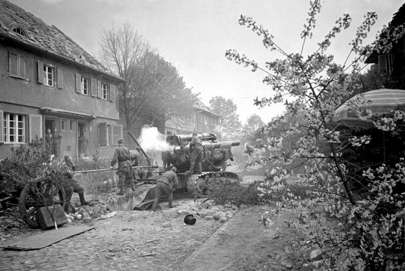 Здравствуйте Уважаемые читатели! Советский расчет гаубицы Б-4, калибром 203 мм в конце апреля 1945 года ведет огонь прямой наводкой на улице Берлина, что на окраине города. Командир орудия Н.С. Мешков из 100-й гаубичной артиллерийской бригады. Что интересно, для огня прямой наводкой "Кувалда Сталина" рассчитана не была, тем не менее его применяли, особенно при штурме укрепленных позиций врага. Оно и неудивительно, снаряд весом 100-150 килограмм, в зависимости от классификации, мог многое натворить. Так же данное орудие применялось даже против бронетехники, под Курском было попадание в САУ Фердинанд, которое знатно разворотило. А на этом все. Еще больше фактов на канале "Наша история это Гордость" в ТГ. До свидания! Оружейная лига 0 постов • 0 подписчиков Подписаться Добавить пост Подробнее о правилах