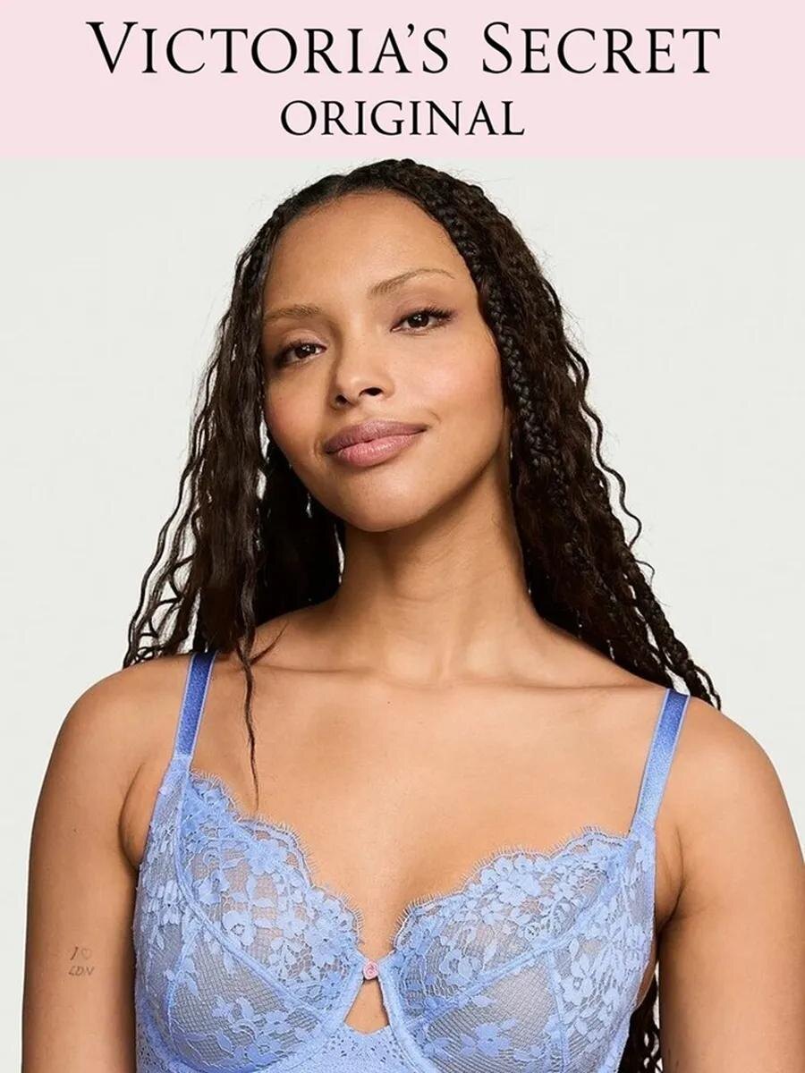Бюстгальтер Victorias Secret 36DD васильковый кружевной The Fabulous by Victorias Secret Unlined Lace Full-Cup Bra