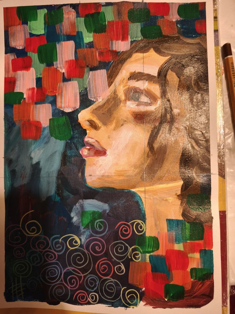 Пишу стилизованный портрет. Надо было прикинуть как конкретно стилизовать и я делала эскизы, чтобы продумать именно фон. Профиль