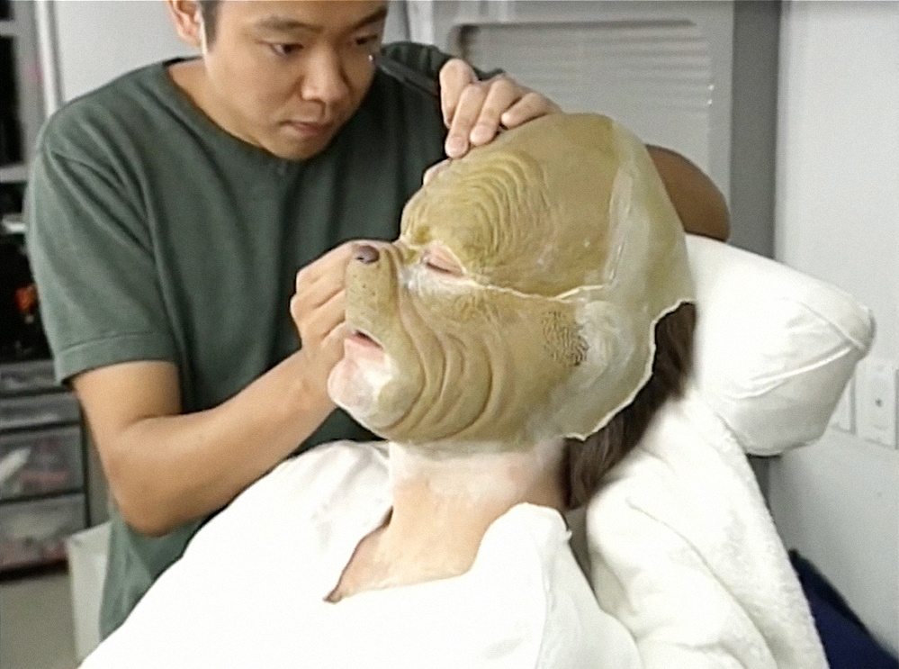 Каждый съемочный день начинался с 8,5 часов гримировки (к концу съемок время сократили до 2,5 часов, но начало было адом). Керри описывал свои ощущения так: «Представьте, что вас хоронят заживо каждый день. Вы не можете почесаться, не можете нормально дышать, а кожа под латексом постоянно потеет». В первый же день съемок нервы Джима не выдержали. После восьми часов в кресле гримера он в ярости пнул стену своего трейлера, пробив в ней дыру, и заявил режиссеру Рону Ховарду: