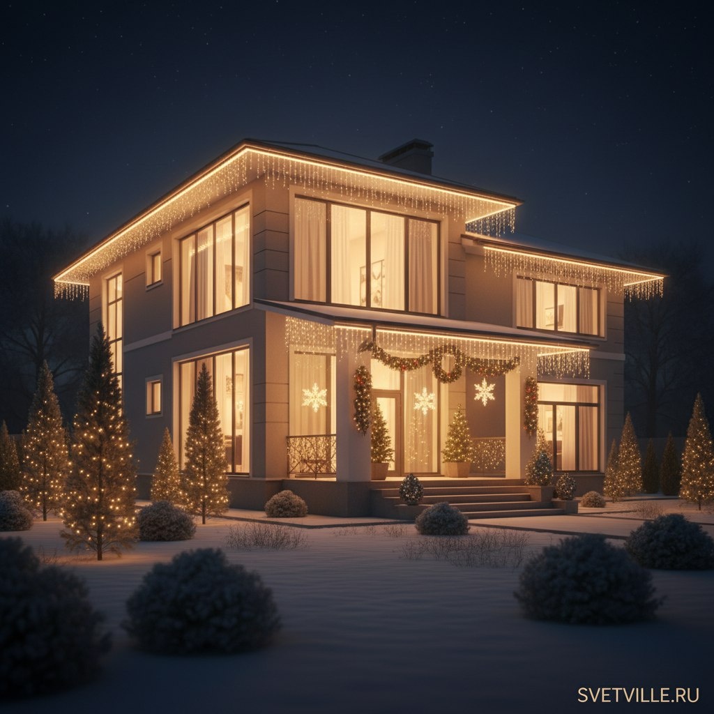 ✨ Украшаем дома и коттеджи под ключ: крыша 🎄 фасад 💡 вход 🏡 деревья и ёлки ✨ Работаем аккуратно и оперативно. Пришли фото дома +7(999)8508849 📲. Светвилл с 2016 года, реализовали более 800+ проектов,делали для известных клиентов. 🔎svetville.ru #svetville #светвилл #подсветка #иллюминация #гирлянды #новыйгод #декор #москва #спб