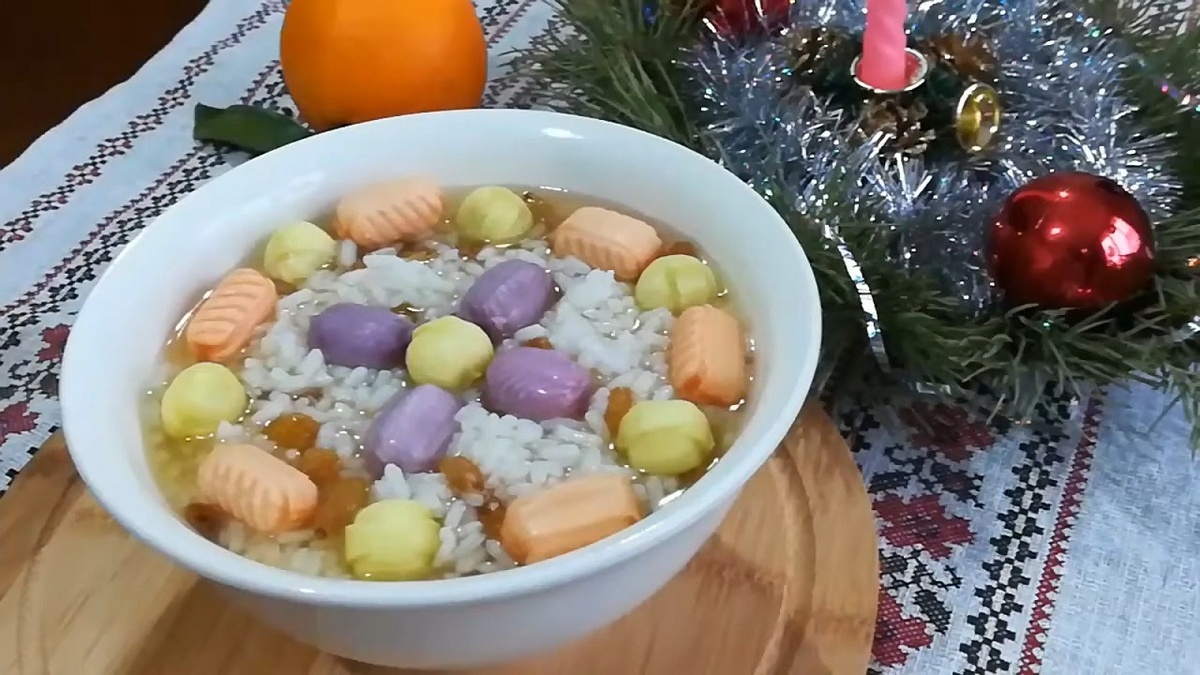 Доброго всем дня. Новогодние праздники позади, и настало время задуматься о меню для Рождественского стола. В Рождество я не стремлюсь к кулинарным изыскам, предпочитаю традиционные русские блюда. Есть три рецепта, которые я обязательно готовлю на Рождество, и хочу поделиться ими с вами. Кутья на Рождество- это символ возрождения. Готовят ее в канун Рождества - сочельник. Кутью варили из пшеницы, перловки, ячменя, риса, овса и даже гречки. В нашей семье традиционно готовят из риса. Приготовить рассыпчатую рисовую кашу. Сироп: на пол литра воды беру 3-4 столовые ложки сахара, для аромата можно добавить дольку лимона. Кипятить до полного растворения сахара, немного остудить и добавить мед. Чем больше, тем лучше. Кутья должна быть сладкой и сочной. В кашу добавить изюм или сухофрукты и залить сиропом. Сверху обычно украшаем карамелью. Когда конфеты начнут таять они придадут кутье особый аромат. Обязательным дополнением к кутье - узвар. Это компот из сухофруктов с добавлением меда и душист