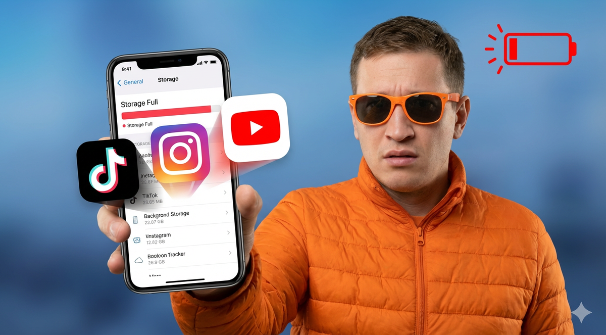 На iPhone: Settings → General → iPhone Storage. Посмотрите, какие приложения самые большие. Если TikTok занимает 3 ГБ, а Instagram 2 ГБ — это не вирус, это нормально. Если приложение называется "System Update" и весит 500 МБ — это подозрительно.
