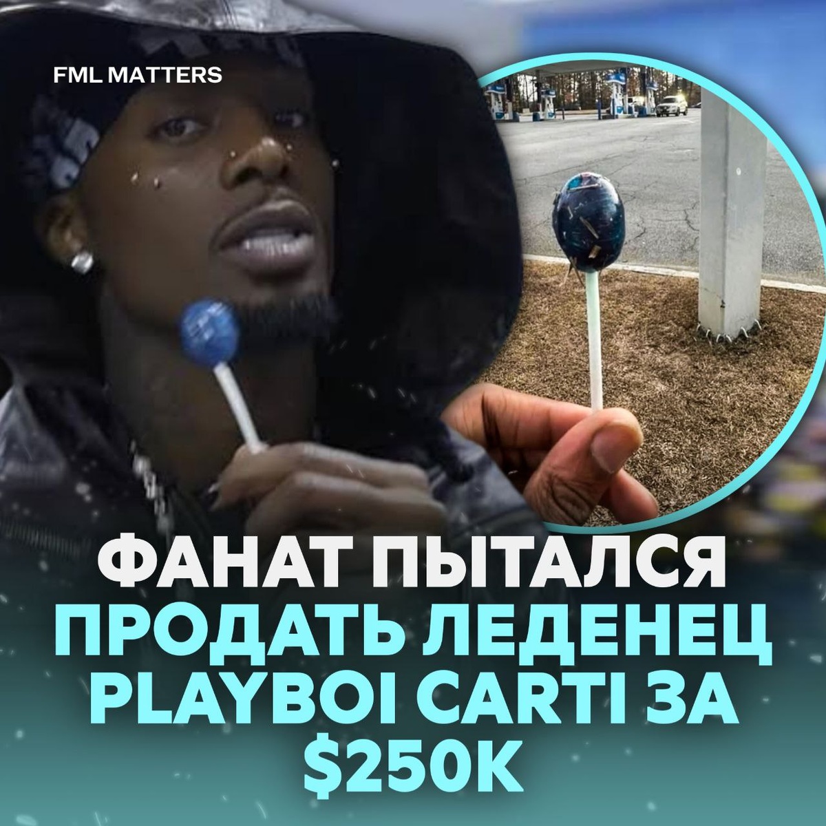 ! Один поклонник нашёл леденец, использованный рэпером в клипе «2024», и попытался продать его на местном авито за $250 000. «Вы безумцы», — отреагировал Playboi Carti Конфету так и не купили 😢 💀 FML MATTERS