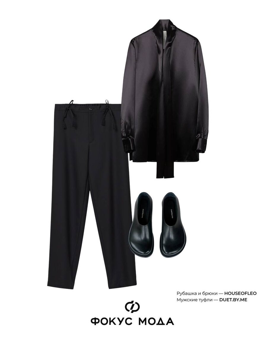 Ничего скучного — только комфорт и эстетика. Начнём с интеллигентного минимализма. Белая рубашка House of Leo становится чистым холстом, к которому добавляются лаконичные чёрные брюки того же бренда. Внизу — туфли-галоши Duet by Me: ироничные и удобные, чтобы образ не выглядел слишком «правильным». Далее — немного расслабления. Чёрный пиджак и брюки Zarina создают спокойную базу. А анатомические дерби Duet by Me добавляют комфорта и стиля. И ещё один вариант для тех, кому мало просто быть нарядным. Пиджак и брюки с акцентными лентами от VERGE, лаконичные чёрные лоферы Lime, чтобы весь этот концепт не улетел в театральность. #ФокусМода_подборка ⚫️ focusmoda.ru