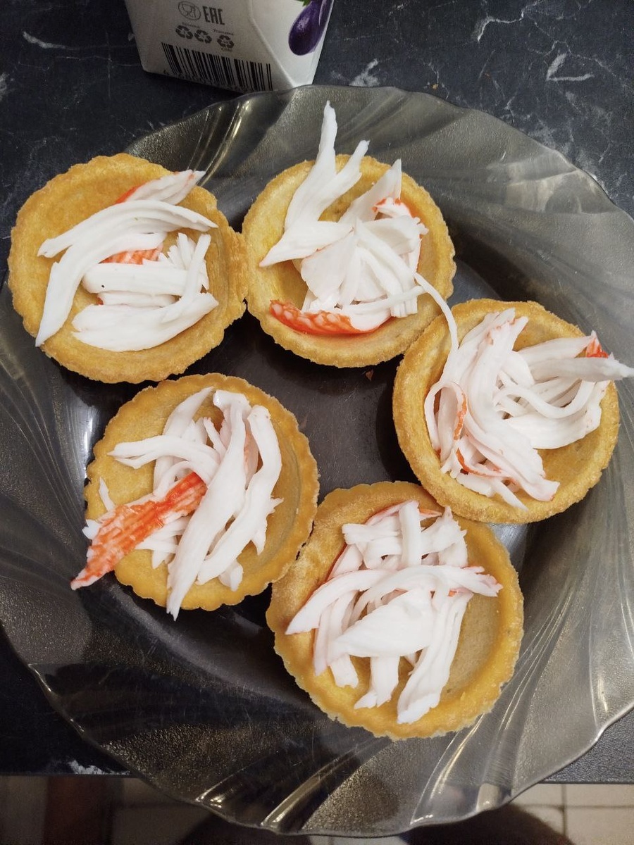 Обозвал ее "Черный месяц" Итак. -тарталетки салатные -крабовые палочки -огурец -антарктик криль на ваш выбор (намазка такая) -икра палтуса Месяц получается потому, что на огурец намазка не ложится, а соскальзывает. Поэтому огурец сдвигаем на край. #новыйгод #папанакухне #закуска