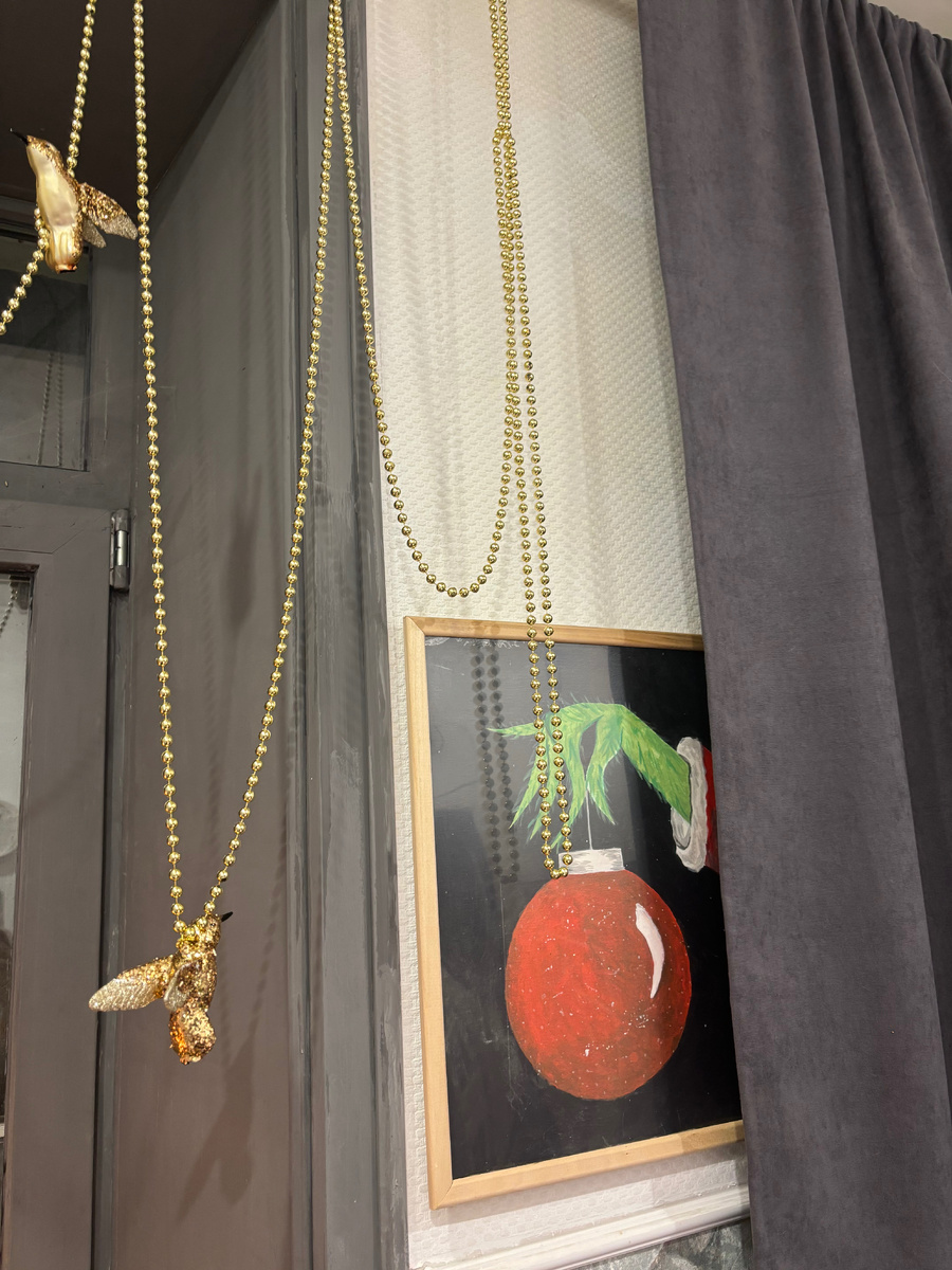 на кухне над окном повесили бусы, к ним прикрепили стеклянные елочные игрушки в виде птичек (мне кажется смотрится здорово).