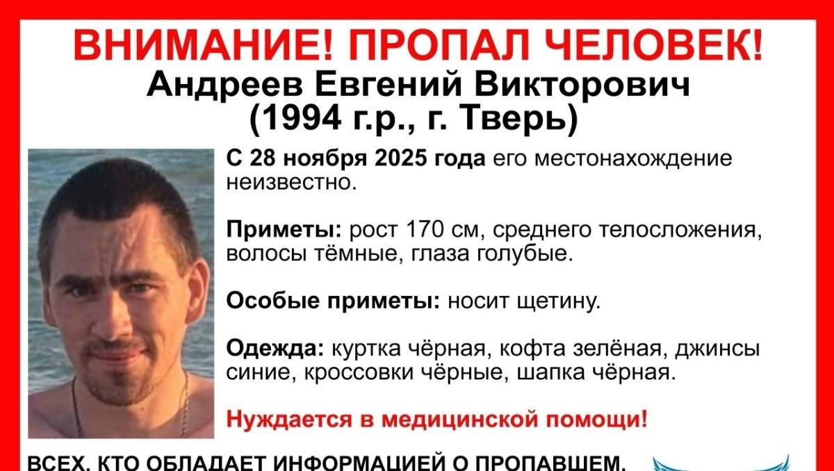 Волонтёры поисково-спасательного отряда "Сова" объявили о розыске 31-летнего жителя Твери, местонахождение которого неизвестно с 28 ноября 2025 года. По данным отряда, мужчина требует срочной медицинской помощи. Всех, кто обладает информацией о его местонахождении, просят незамедлительно связаться с волонтёрами через указанные в ориентировке контакты или напрямую с информатором поиска — Анжеликой Ликой по телефону 8 910 648-24-94. Читайте также: В Тверской области в серьезной аварии пострадала девочка