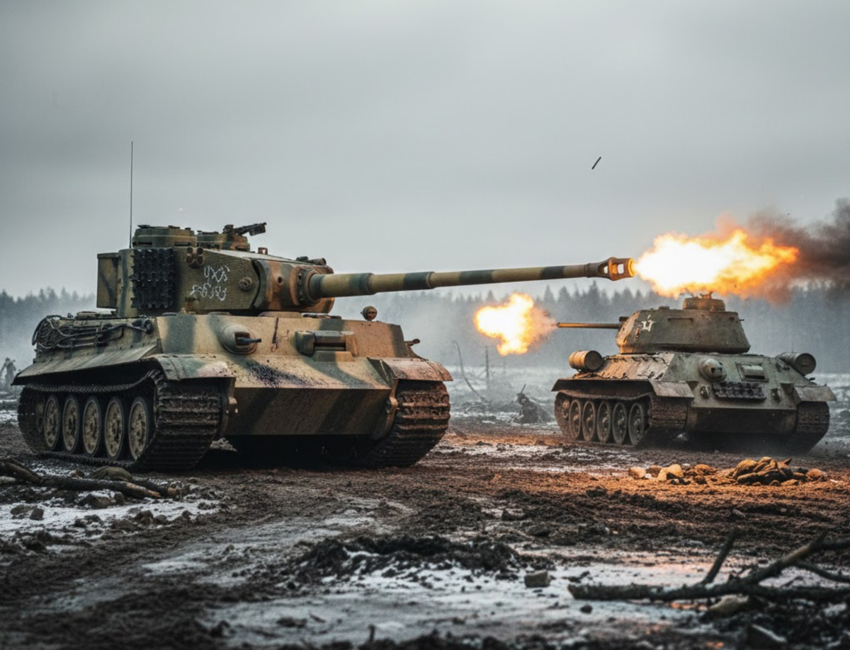 Если попросить человека, далёкого от истории, назвать «самую известную танковую дуэль Второй мировой», он почти наверняка скажет: «Тигр против Т-34». В реальности это не одна конкретная битва, а собирательный образ тысяч столкновений на Восточном фронте. Но именно эта пара стала легендой — и не только из-за железа. Здесь смешались психология, пропаганда, условия войны и простой человеческий опыт экипажей, которые вели бой на расстоянии, где ошибка стоила жизни. Танковые бои редко проходят по сценарию «вышли на поле два танка». Чаще это артиллерия, пехота, авиация, минные поля, разведка, связь, логистика и только потом — бронетехника. Но фронт любит простые символы. Для немцев «Тигр» стал воплощением технологического превосходства. Для советских солдат Т-34 был символом массовости, выносливости и того, что машина может воевать в любой грязи и морозе. И когда эти символы сталкивались, рождался идеальный сюжет: тяжёлый «охотник» против манёвренного «солдата войны». Он легко запоминался, л