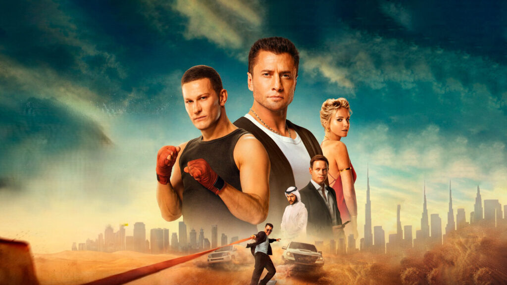 - Экшен‑сцены. Погони на машинах, рукопашные бои, трюки (например, проезд Прилучного на дверце авто по пустыне) поставлены профессионально. В съёмках участвовали каскадёры мирового уровня (в т. ч. Мартин Иванов, работавший над «Форсажем 6»).
