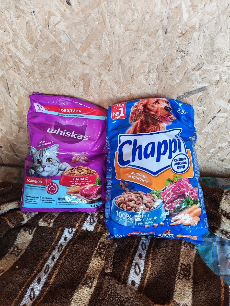 🙏 От Павла гостинцы вкусняшки 😋 сухой корм! А еще огромное спасибо за запас воды для приюта
