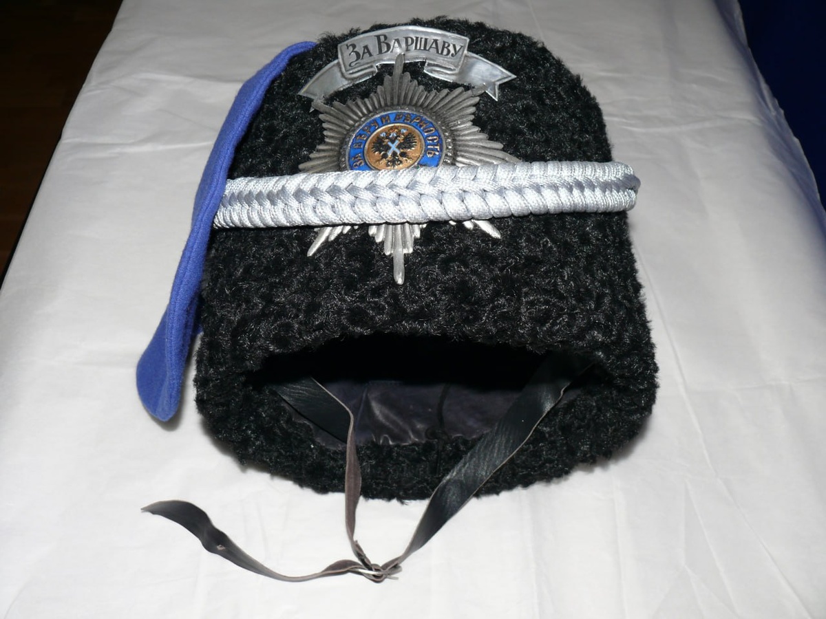 Шапка к парадной униформе хорунжего Лейб-гвардии Атаманского полка (детская). Копия на 1914 г. Период создания:2002 Материал, техника:искусственный каракуль, сукно, металл, кожа, эмаль, пошив Размер:Диаметр дна - 21 см. Высота изделия - 17 см. Длина шлыка - 37 см, ширина - 20,5 см. Место создания:Россия. г. Ростов-на-Дону. Номер в Госкаталоге:36678762 Номер по КП (ГИК):НМИДК КП 18887/3 Инвентарный номер:Тк-808/ #РИА #Казаки Местонахождение - Государственное бюджетное учреждение культуры Ростовской области "Новочеркасский музей истории донского казачества"