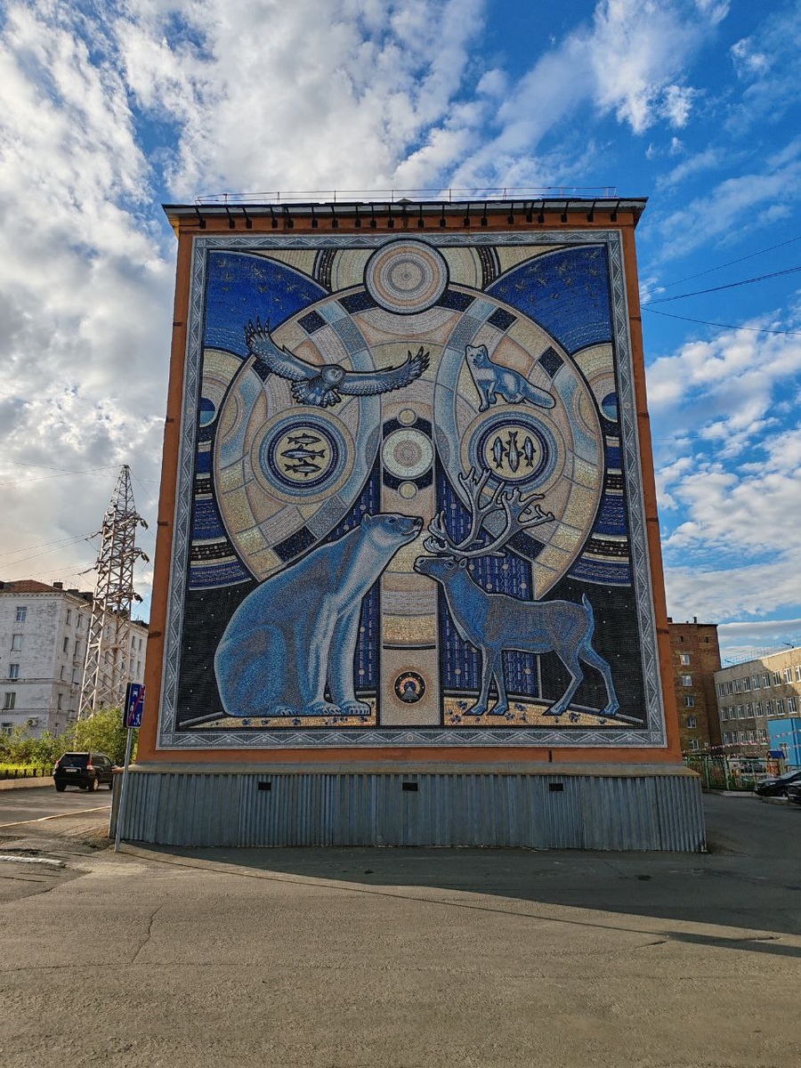 Там, где зима долгая и полярная ночь может тянуться неделями, людям необходимо искусство — оно греет похлеще печки. Муралы в Норильске отражают Таймыр во всех его проявлениях: здесь и северные олени, и величественные совы, и белые медведицы с медвежатами — флора и фауна, вплетённые в городской пейзаж, будто природа возвращает себе бетон.