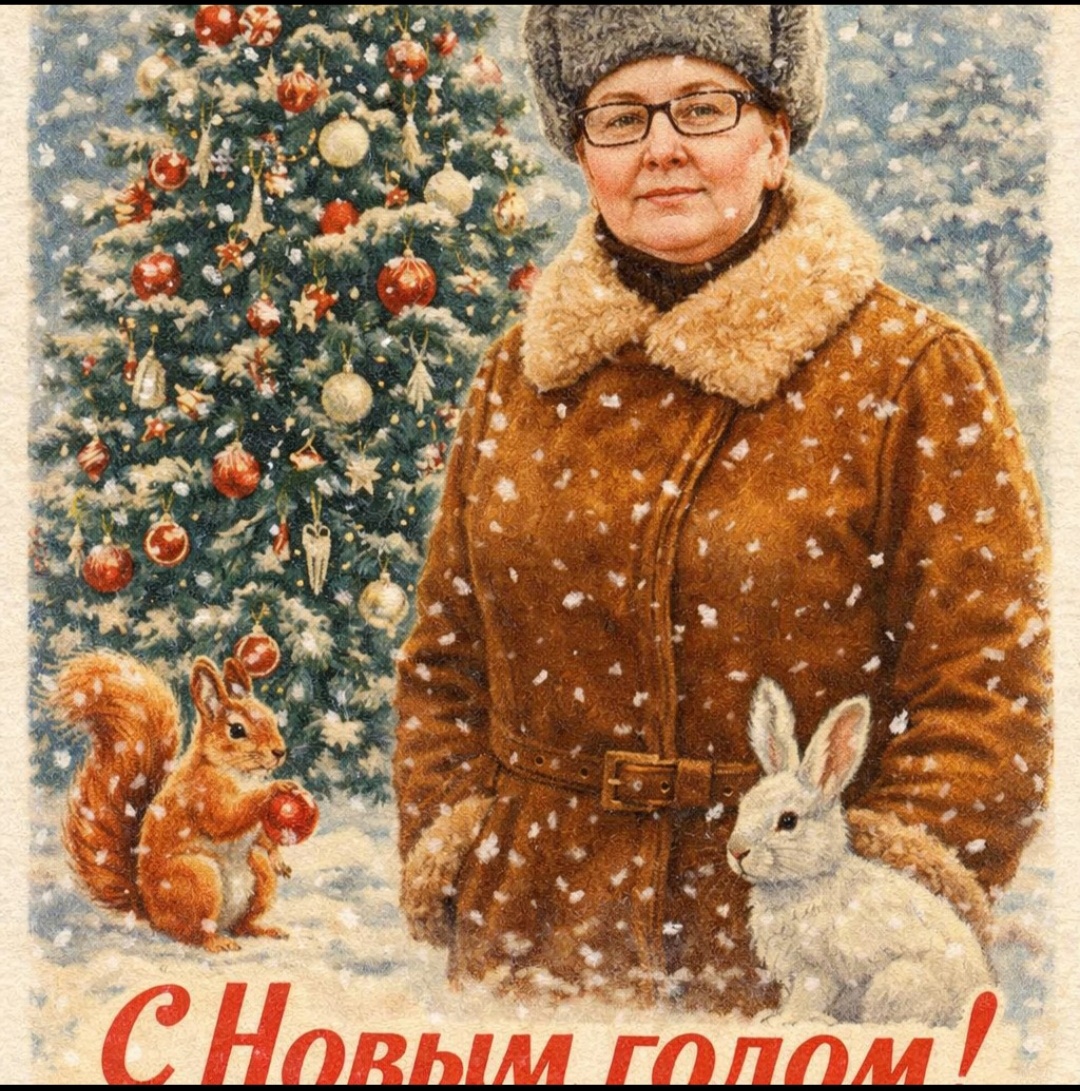 Создай винтажную новогоднюю открытку на основе загруженной фотографии в стиле СССР.