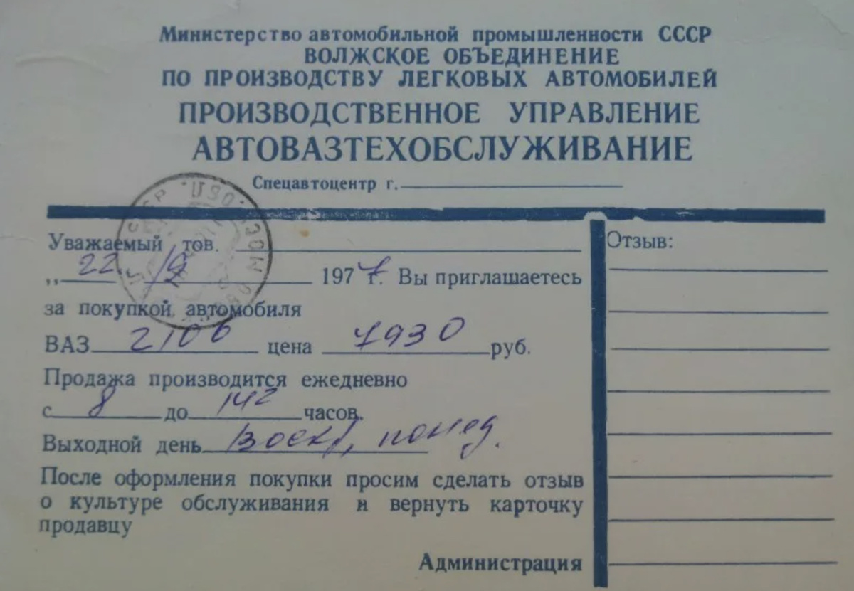Покупка машины в СССР напоминала квест с непредсказуемым финалом. Рабочий со средним доходом 150 руб. теоретически мог собрать на ВАЗ-2101 стоимостью 5500 руб. за несколько лет упорных накоплений. Но деньги решали только половину задачи.