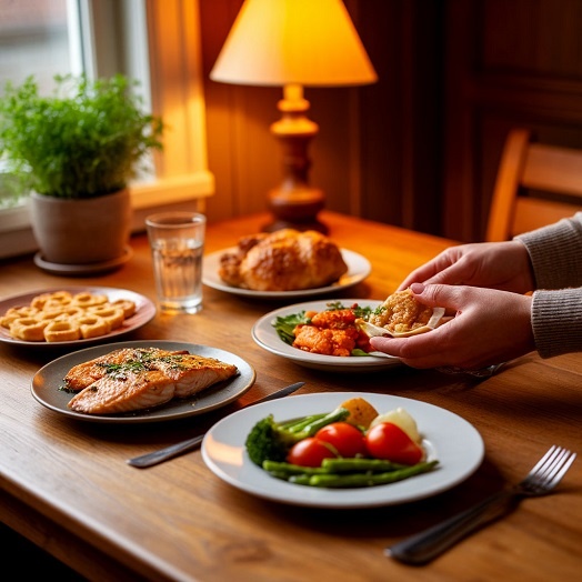 Помогает простое правило — есть медленнее, прислушиваться к ощущениям и делать небольшие паузы между подходами к столу. Можно заранее договориться с собой: попробовать понемногу разных блюд, но не стремиться «успеть всё».