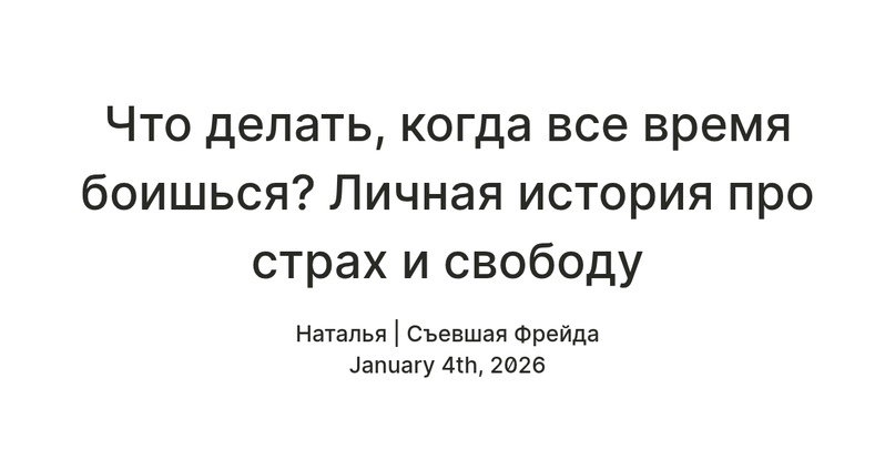 Страх — это не враг. Это часть меня. Иногда гиперответственная, паникерская, но все же часть. И когда ты перестаешь тратить силы на борьбу с собой, высвобождается невероятное количество энергии. На саму жизнь. На ту самую, которую мы так боимся потерять или испортить.