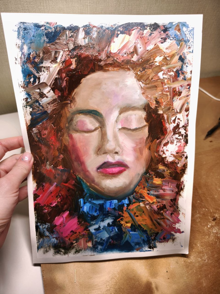 Такое надо делать с текстурной пастой. Или не делать 😅 Масло на бумаге так гладенько смешивается. Приятно и неспешно. То, что выше- я рисовала акрилом. Он быстро сохнет и пятна так гладенько не соединяются.