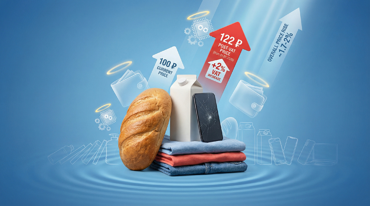Повышение базовой ставки НДС с 20% до 22%, вступившее в силу с 1 января 2026 года, стало самым значительным изменением в российском налоговом законодательстве за последние годы. Механизм воздействия прост и беспощаден: бизнесу приходится платить больше налогов за сырье, оборудование, транспортные услуги и даже коммунальные платежи, а эти дополнительные издержки неизбежно перекладываются на покупателей. С продуктовыми товарами ситуация неоднозначная, поскольку здесь действует двойная система ставок НДС. Социально значимые продукты первой необходимости - такие как мясо, молоко, хлеб, крупы, сахар и яйца по-прежнему облагаются льготной ставкой 10%, что теоретически должно смягчить удар по их стоимости. Однако даже в этом сегменте цены все равно поползут вверх, поскольку затраты на производство растут повсеместно: дорожает логистика из-за индексации акцизов на топливо (примерно на 5%), повышаются тарифы на электроэнергию и коммунальные услуги, а также сырьевая база, не входящая в льготный