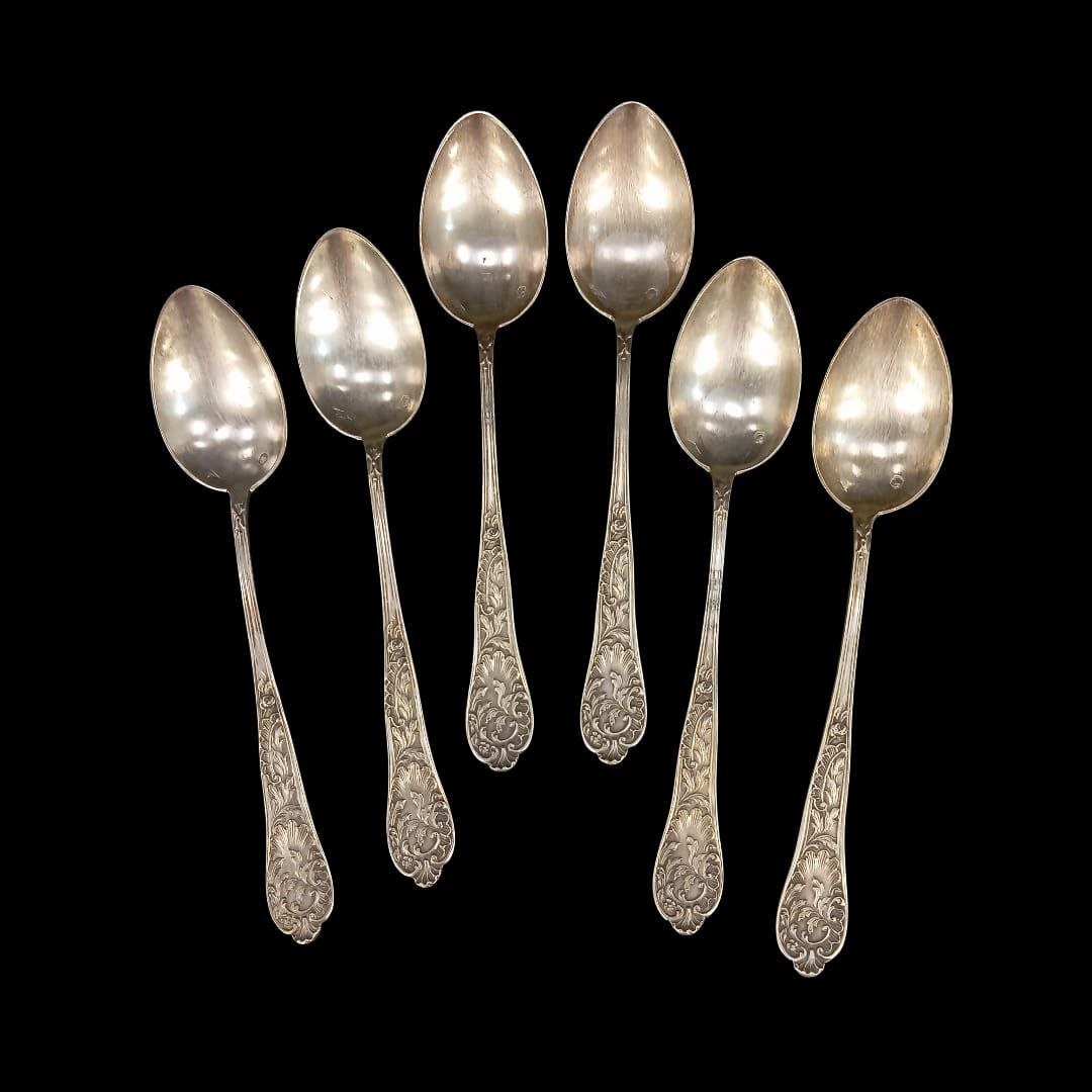 _____ Оригинал. В наличии в Москве. Франция. 1887—1908 гг. Набор изящных антикварных серебряных чайных ложек (в комплекте 6 шт.), изготовленных во Франции на рубеже XIX - XX веков в мастерской Bonnesoeur (Эдмонд Боннесёр). Ложки богато декорированы с двух сторон невероятно красивым рельефным растительным узором. Характеристики: ■ Категория: Антиквариат; ■ Период производства: 1887—1908 гг; ■ Место производства: Франция; ■ Клеймо/Бренд: Минерва в шлеме с цифрой 2 (Minerve casquée), ■ Клеймо ювелира: Bonnesoeur (Эдмонд Боннесер); ■ Длина: 13,8 см; ■ Общий вес: 111 гр; ■ Материал: Серебро 800/1000; ■ Состояние: Прекрасная антикварная сохранность. Следы бытования. Присутствует естественная патина. Артикул: 1910253. 🎁 Это не только шикарный, уникальный подарок, который вызывает радость и восхищение, но и приятная инвестиция! 🥇 Уникальные работы престижных фабрик, мастеров Европы, Российской Империи и других. True Luxury, Premium изделия. Заходите - всегда рады Вам. 🇫🇷 Только ори
