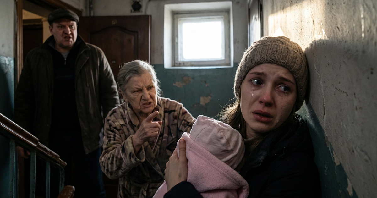Звук захлопнувшейся двери был похож на удар молота по наковальне — резкий, металлический, окончательный. Эхо покатилось вниз по бетонным ступеням, множась и затихая, а Елена всё стояла на площадке четвертого этажа, не в силах сдвинуться с места. В ушах звенело, словно после взрыва. Руки, державшие трёхмесячную Анечку, онемели — не от тяжести, а от того, что она сжимала дочь слишком крепко, боясь, что если отпустит хоть на секунду, то всё это окажется правдой. Холодный сквозняк, вечный житель подъездов, полез под тонкую осеннюю куртку, но Лена не чувствовала холода. Пока ещё не чувствовала.