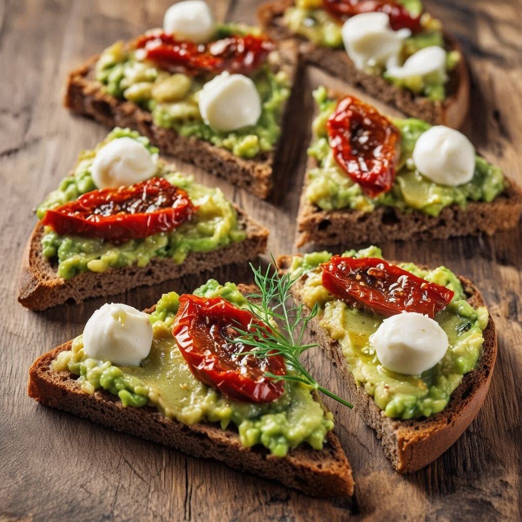 1. Брускетты с авокадо, моцареллой и вялеными томатами